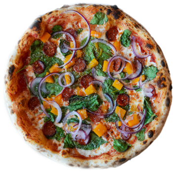sos pomidorowy l ser l szpinak l chorizo l dynia marynowana l cebula czerwona l parmezan